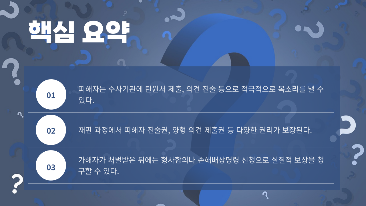 형사사건 피해자는 단지 ‘진술만 하고 끝’이 아닙니다.